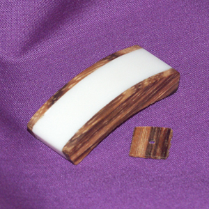 I recently (this was written in 2005!!) received a sample of an Ivory Substitute manufactured in Germany called "Elforyn"® which I intend to combine with Rosewood or Ebony (or both). | |